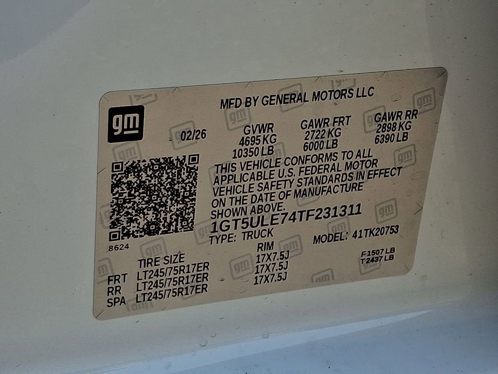 - Tire, spare LT245/75R17E all-season, blackwall (Included and only available with (QHQ) LT245/75R17E all-season, blackwall tires with (E63) pickup bed models. Available to order when (ZW9) pickup bed delete and (QHQ) LT245/75R17E all-season, blackwall tires are ordered.)